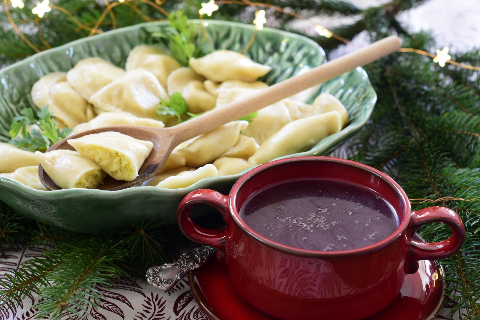 W Gościńcu Nowa Wioska przygotujemy dla Ciebie Świąteczny Catering prosto na domowy stół: tradycyjny barszcz z uszkami, rozmaite pierogi, ryby (karp, dorsz, halibut, okoń morski), gołąbki, pieczone mięsa, pasztety, domowe smalczyki oraz świąteczne ciasta – makowiec, piernik, sernik czy szarlotka.